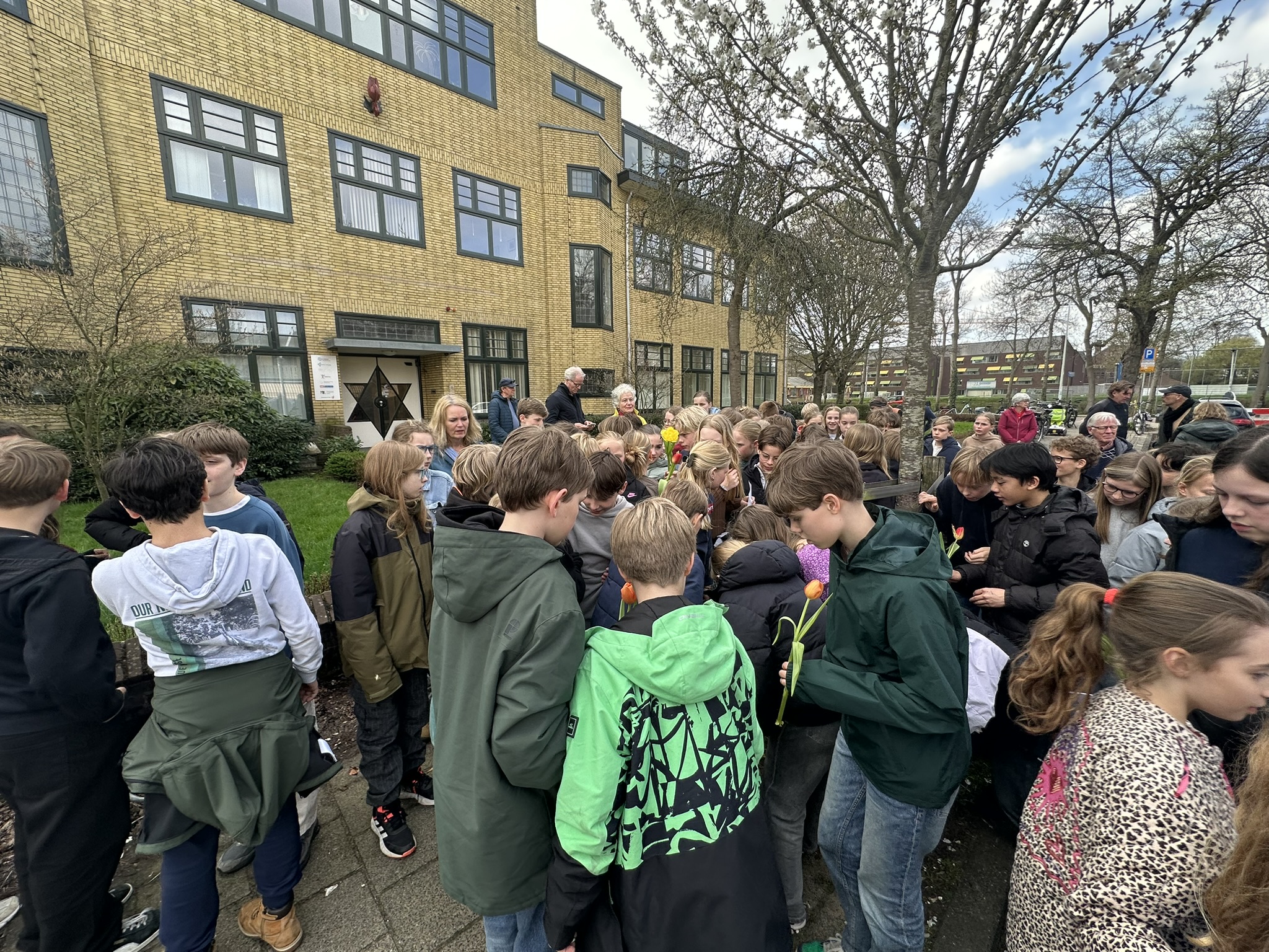 Samen met alle leerlingen van groep 8 van de Josephschool in Leiden werd dinsdag 17 maart de wegvoering herdacht van 17 maart 1943. Er werden gedichten gelezen, de namen werden gelezen en het lied van Claudia de Breij werd gezongen. Bekijk hier het verslag en lees de gedichten en de namen terug.